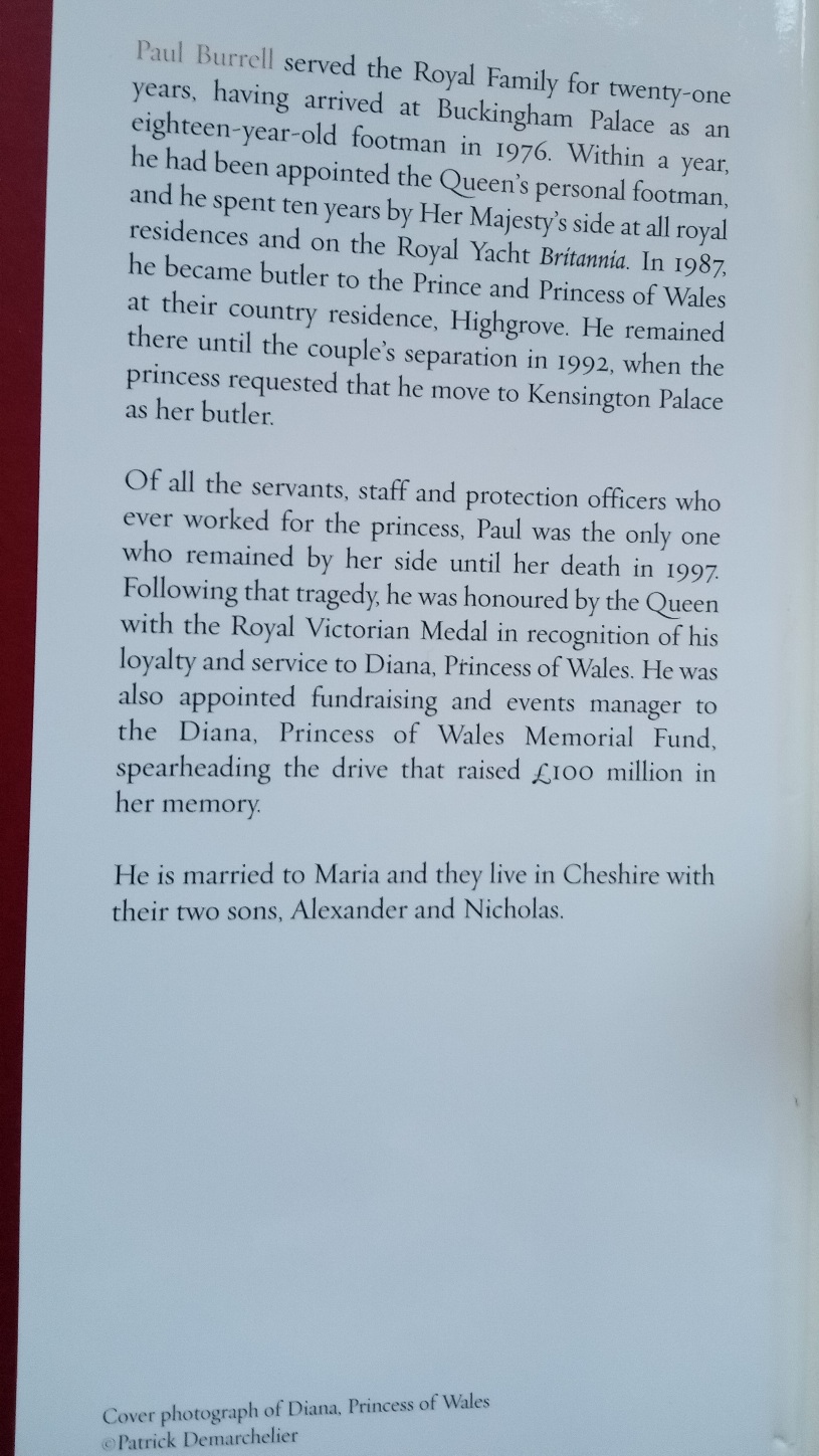 Paul, one of the Queen’s personal footmen, met Diana during one of her first visits to Balmoral Castle. And while it may have been fate that brought them together, they shared a strong bond that endured to the end of her life. Burrell became Diana’s confidant and his unique perspective casts new light on the Princess of Wales and the events that would shape her life and the lives of those around her. At the time of her death there was much speculation about Diana’s future plans including her thoughts about remarrying and the possibility of relocating to America. Paul, who was one of the last people to speak with her, hopes to set the record straight for the Princess he so admired and cherished. Drawing on private conversations, personal recollections, diaries and letters, Paul has written an extraordinary account of a unique time in the history of the Royal Family.