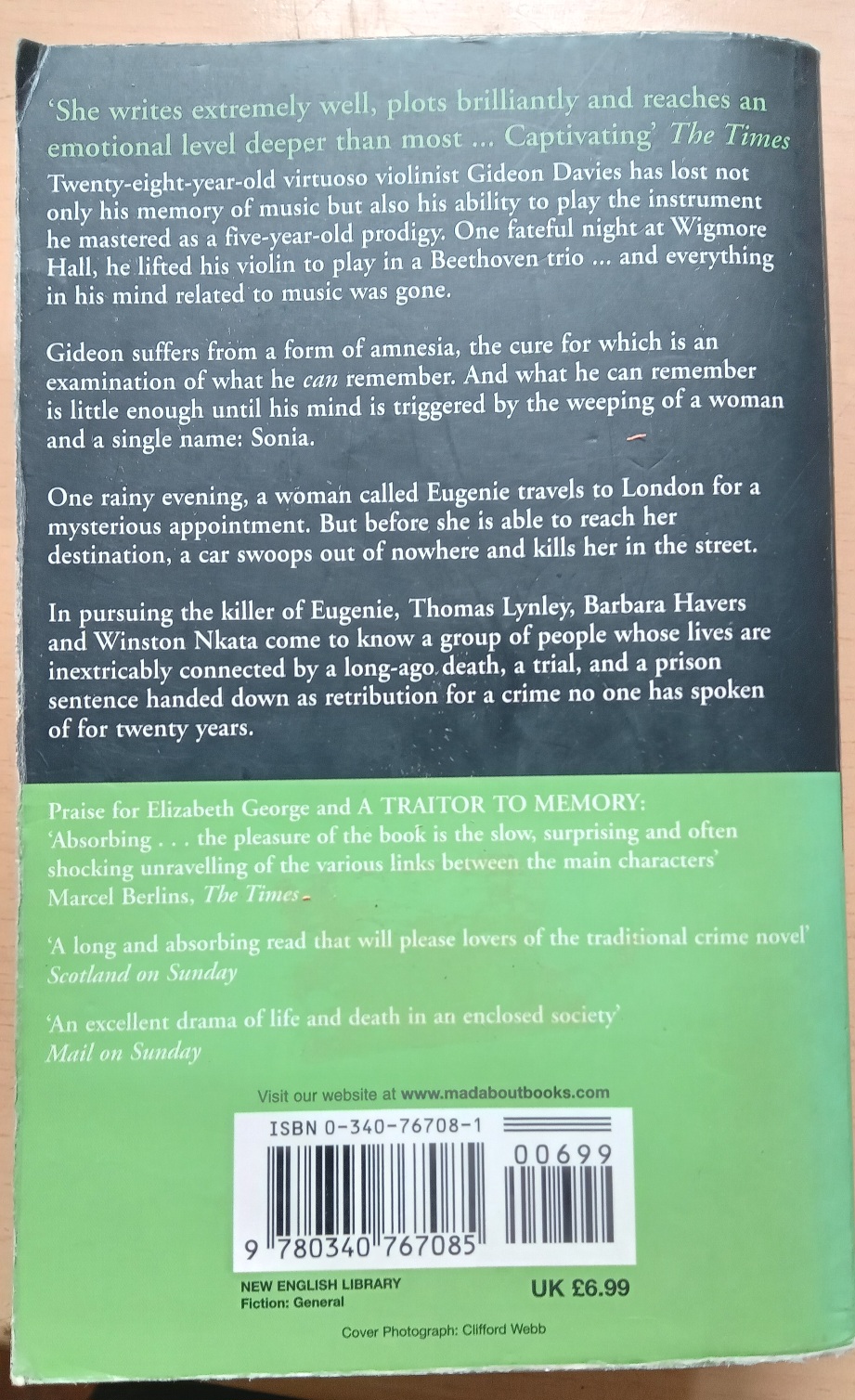 Assigned to the case by his superior, Superintendent Malcolm Webberly, Lynley learns that Webberly’s first murder investigation as a DI over twenty years ago involved Eugenie Davies and a sensational criminal trial. Yet what is truly damaging is what Webberly already knows and no doubt wants Lynley to keep concealed.