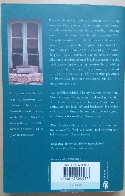 In this witty and warm-hearted account, Peter Mayle tells what it is like to realize a long-cherished dream and actually move into a 200-year-old stone farmhouse in the remote country of the Lubéron with his wife and two large dogs.