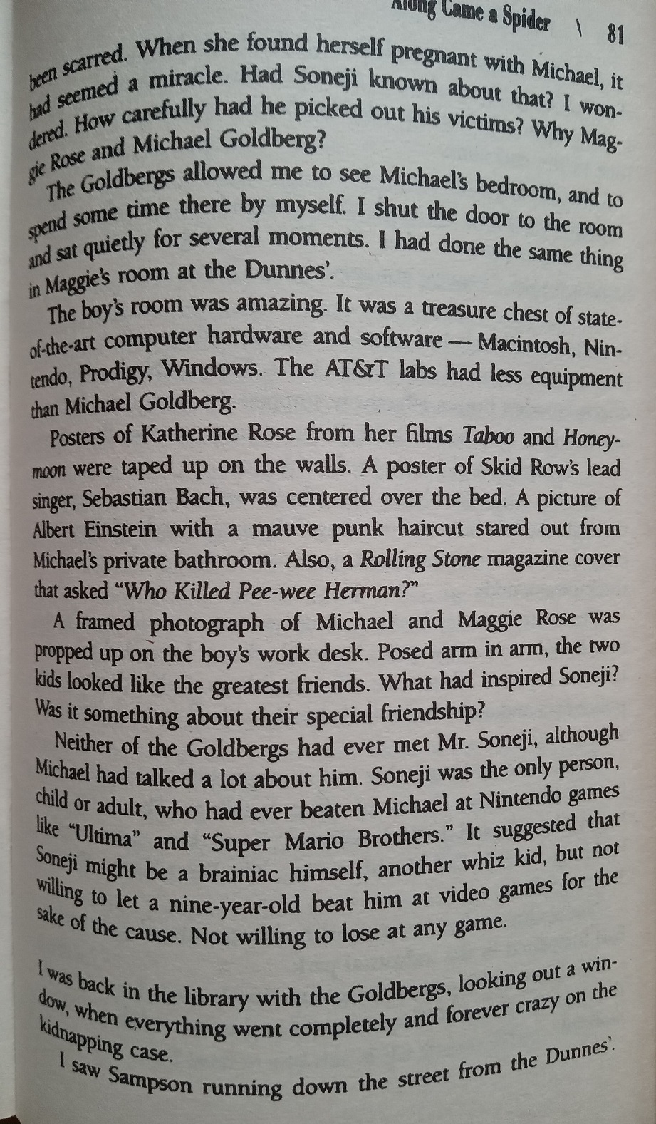 a psychopathic serial kidnapper/murderer who is so terrifying that the FBI, the Secret Service, and the police cannot outsmart him – even after he’s been captured.