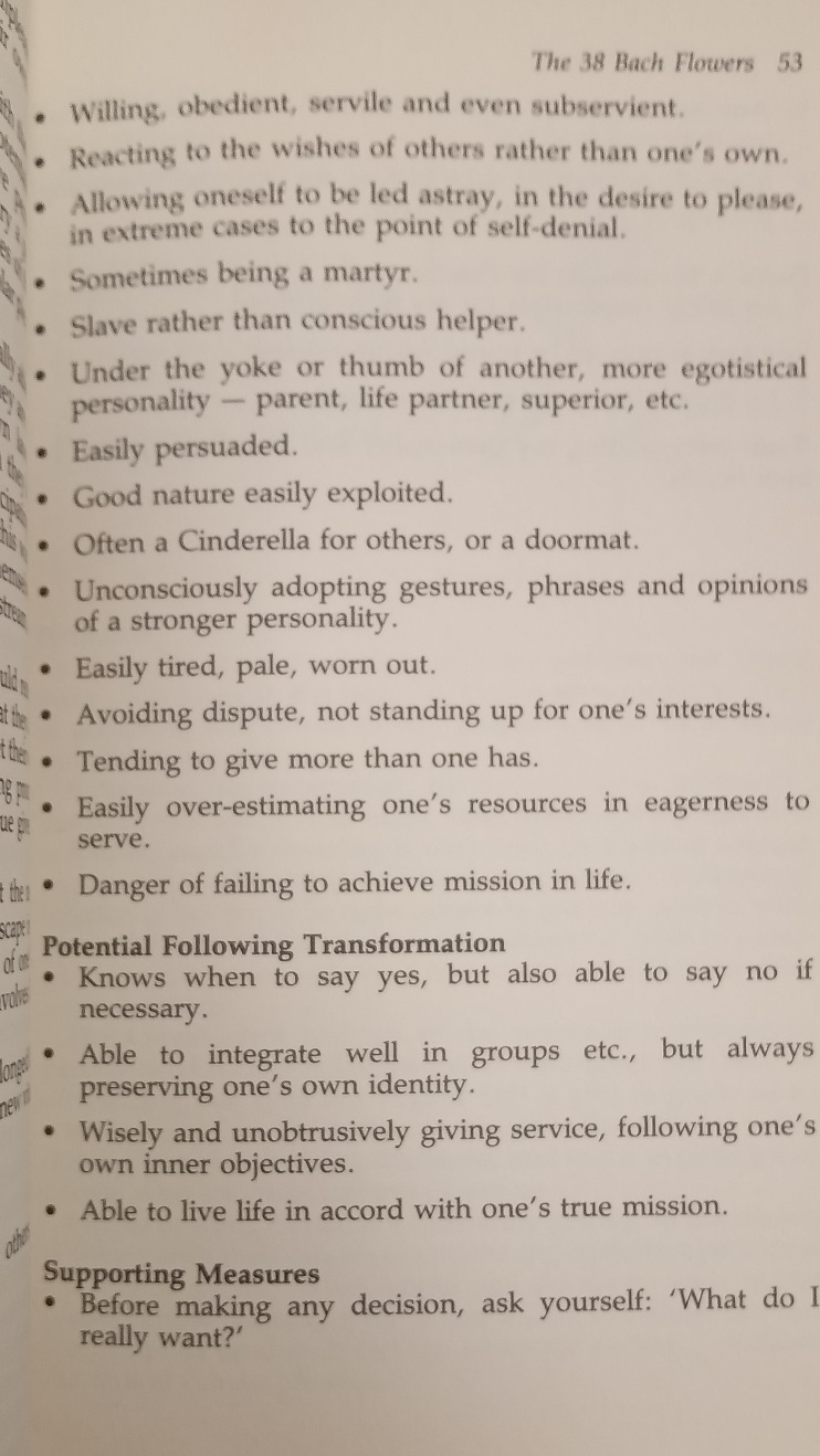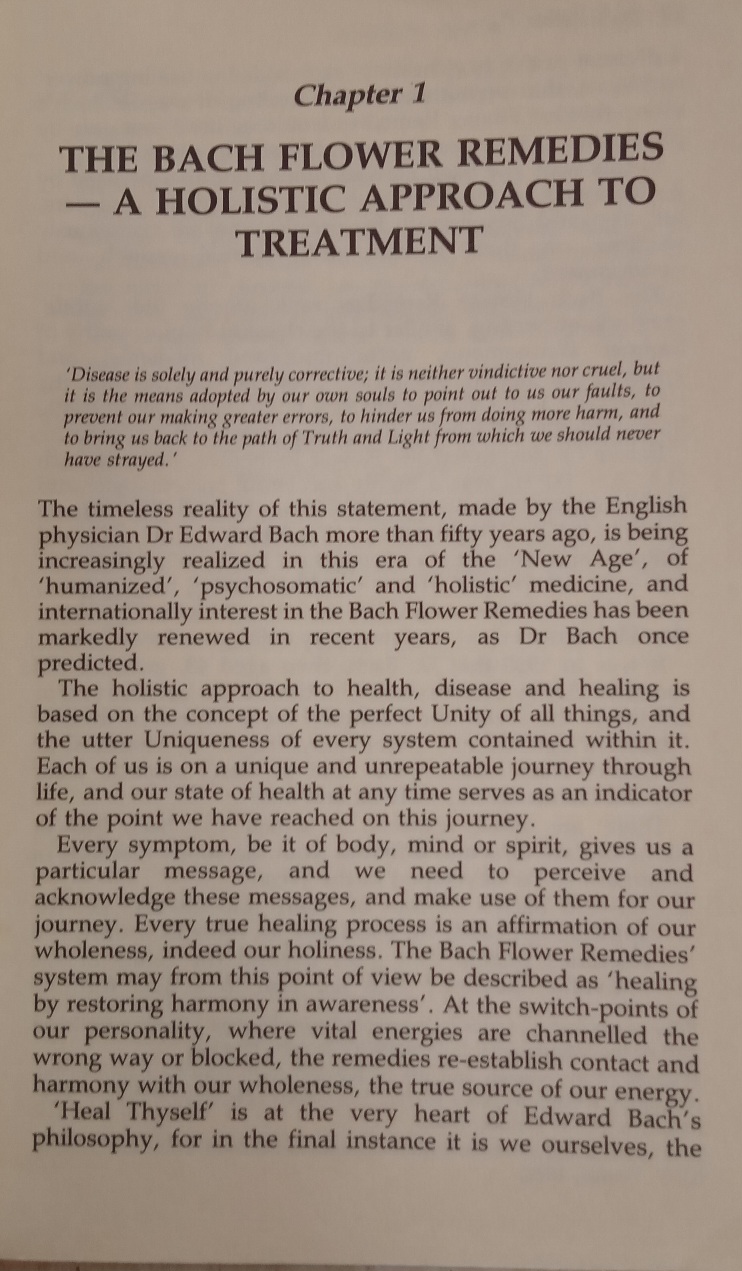 Bach Flower Therapy describes the remedies in such a way that patients taking them will gain deeper insight into the remedies underlying psychological concepts, thereby enhancing the potential for self-healing.