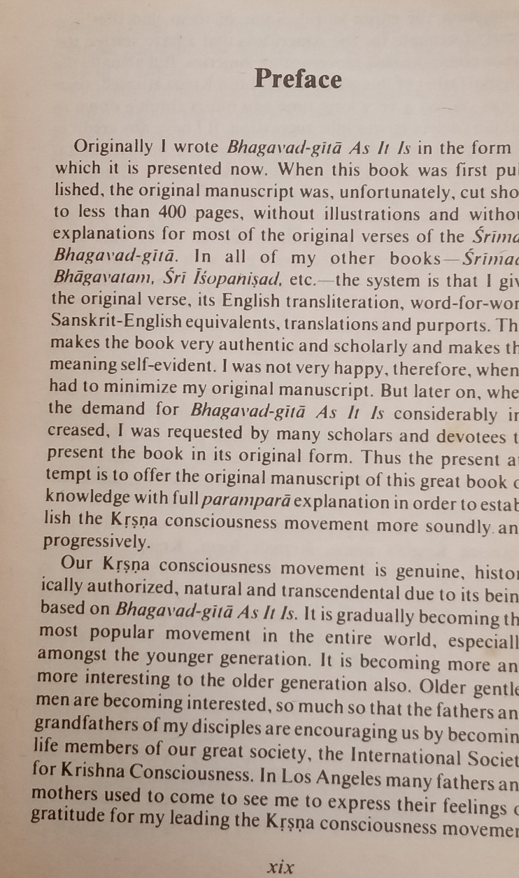 The Bhagavad-Gītā As It Is is a translation and commentary of the Bhagavad Gita by A. C. Bhaktivedanta Swami Prabhupada, founder of the International Society for Krishna Consciousness (ISKCON), commonly known as the Hare Krishna movement.