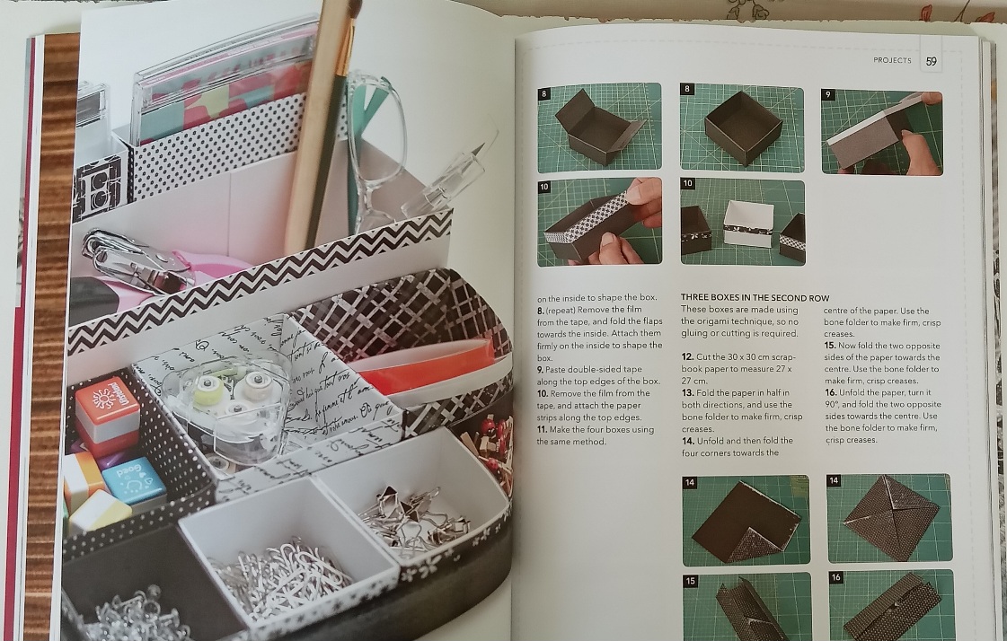 Using adhesive, scrapbook paper, cardstock, fabric, lace, embellishments, washi-tape, ribbon and whatever you have, you can create a stunning array of boxes following the detailed instructions and step-by-step photographs.