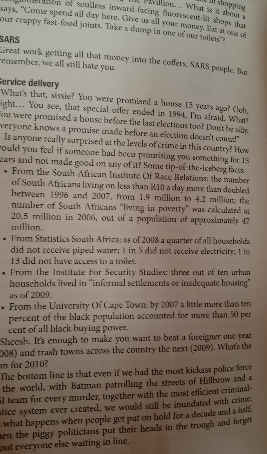 Finally, what the world’s been waiting for (maybe): a comprehensive whinger’s guide that catalogues the overwhelming kakness of our times. Is it comprehensive? Not really. Is it a guide? Kind of. Is it kak? Completely!