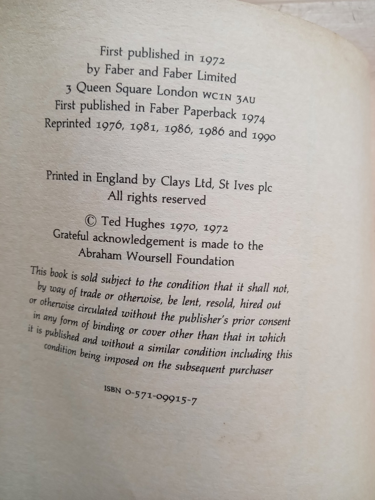 (1972) Faber and Faber Paperback