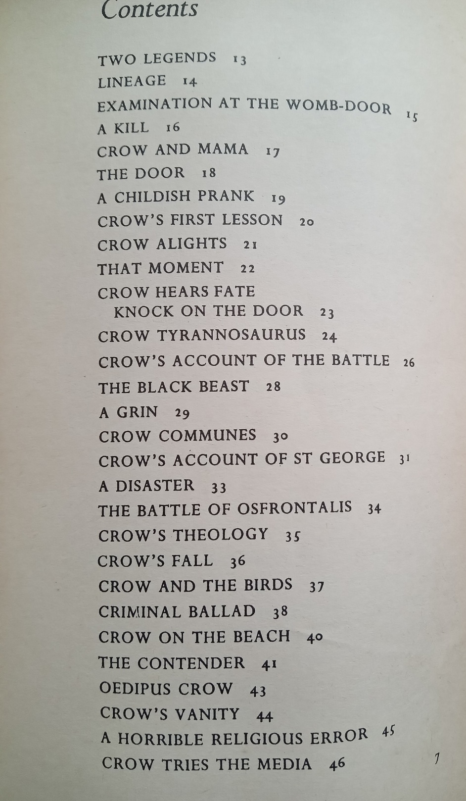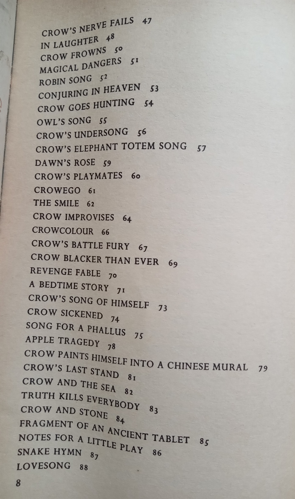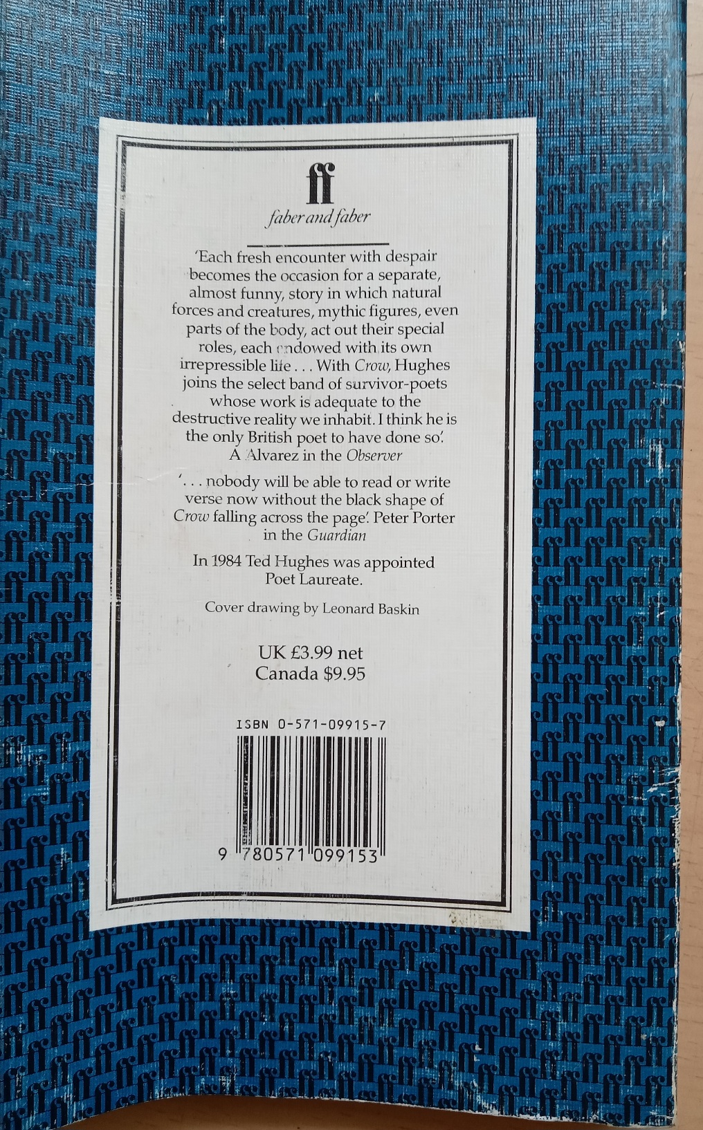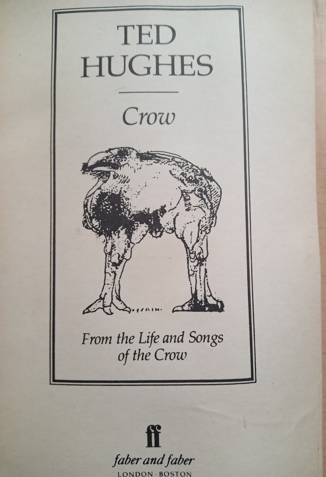 Crow was Ted Hughes’s fourth book of poems for adults and a pivotal moment in his writing career. In it, he found both a structure and a persona that gave his vision a new power and coherence. A. Alvarez wrote in the Observer, ‘Each fresh encounter with despair becomes the occasion for a separate, almost funny, story in which natural forces and creatures, mythic figures, even parts of the body, act out their special roles, each endowed with its own irrepressible life. With Crow, Hughes joins the select band of survivor-poets whose work is adequate to the destructive reality we inhabit.’