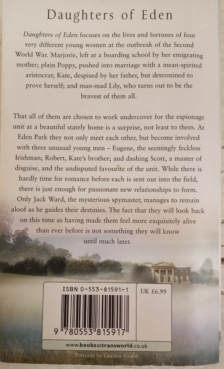 Daughters of Eden” focuses on the lives and fortunes of four very different young women at the outbreak of the Second World War. Marjorie, left at a boarding school by her emigrating mother; plain Poppy, pushed into marriage with a mean-spirited aristocrat; Kate, despised by her father, but determined to prove herself; and man-mad Lily, who turns out to be the bravest of them all.