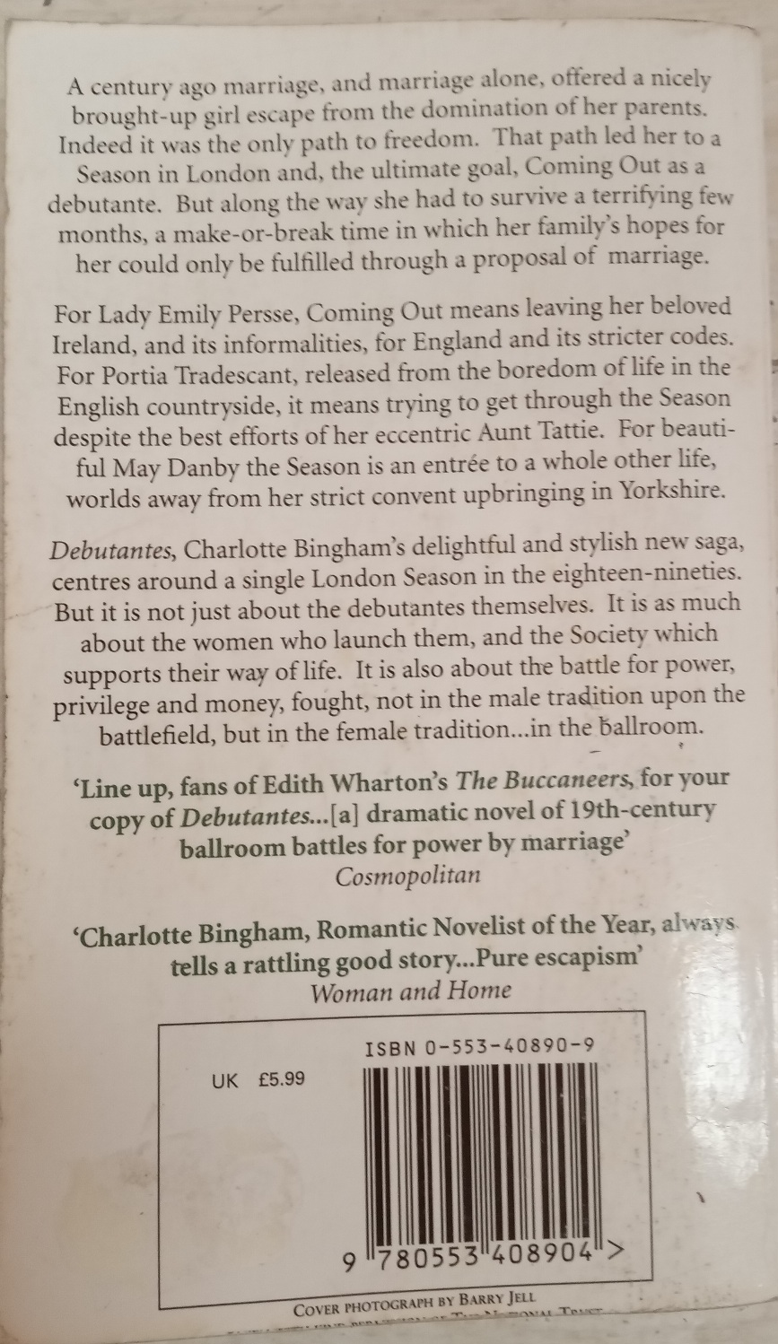 Debutantes, Charlotte Bingham’s delightful and stylish new saga, centres around a single London Season in the 1890s. But it is not just about the debutantes themselves. It is as much about the women who launch them, and the Society which supports their way of life. It is also about the battle for power, privilege and money, fought, not in the male tradition upon the battlefield, but in the female tradition…in the ballroom.