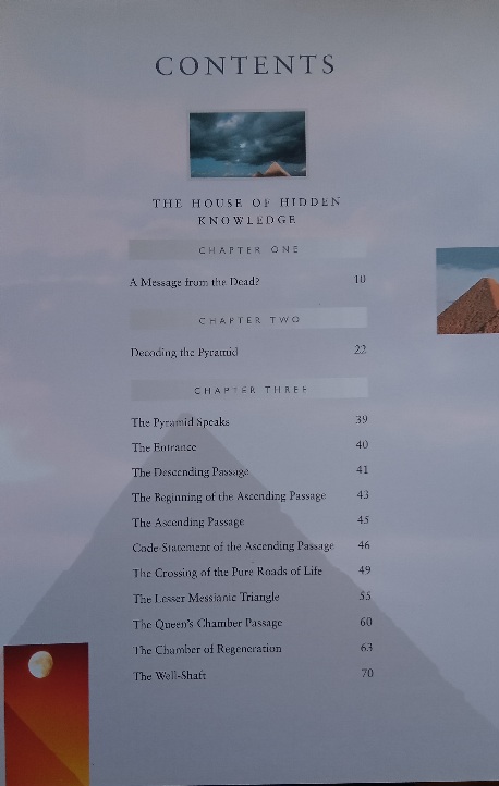 In the second part of the book the author examines the prophetic aspects of the Bible, and compares them with the prophecies found in the Great Pyramid, discovering remarkable similarities to passages in the Gospels and from the ancient Christian prophets, such as Isaiah. The corroborative nature of the various biblical texts examined leave us breathless with excitement.