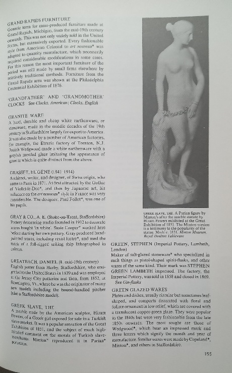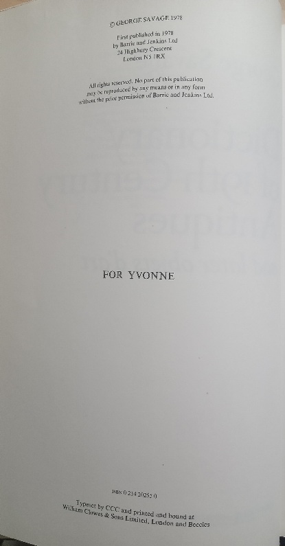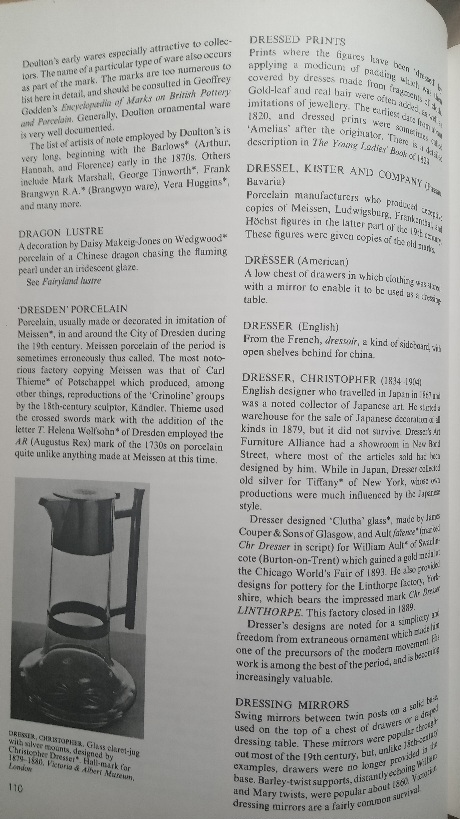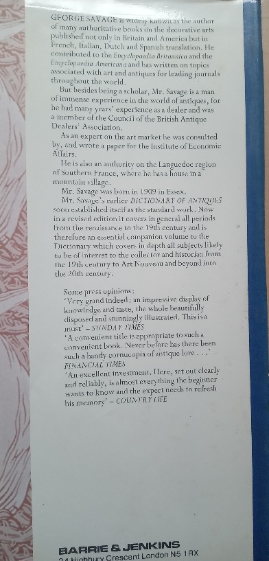 Invaluable source on antiques, with far-ranging and sometimes surprising coverage of topics. A book that can be dipped in by antique lover for picking up bits and pieces of knowledge. Some longer entries are tantamount to full articles on their topics.