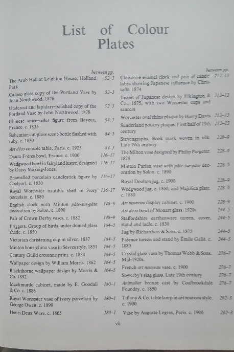 Profuse photographic illustration, some in color. Greater emphasis on finer antiques. Places things in a historical context. Ample coverage of world expositions which so important to decorative arts development of period.