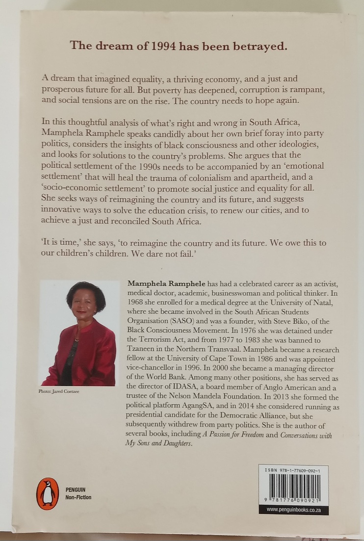 In this thoughtful analysis of what’s right and wrong in South Africa, Mamphela Ramphele speaks candidly about her own brief foray into party politics, considers the insights of black consciousness and other ideologies, and looks for solutions to the country’s problems.