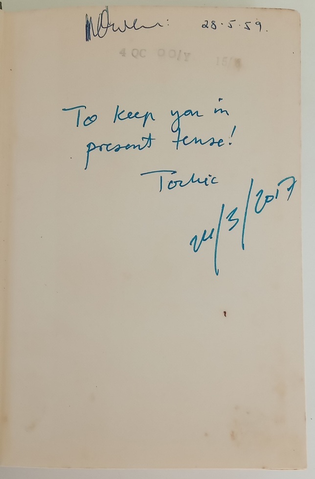 Condition: 1st edition 3rd printing; 1957. No dust jacket. Blue cloth binding; spine faded and top bit frayed. see images please. Ink inscription; foxing on block and first few and last pages. Internally in very good condition.Feels tight and sturdy. Price commensurate to condition.