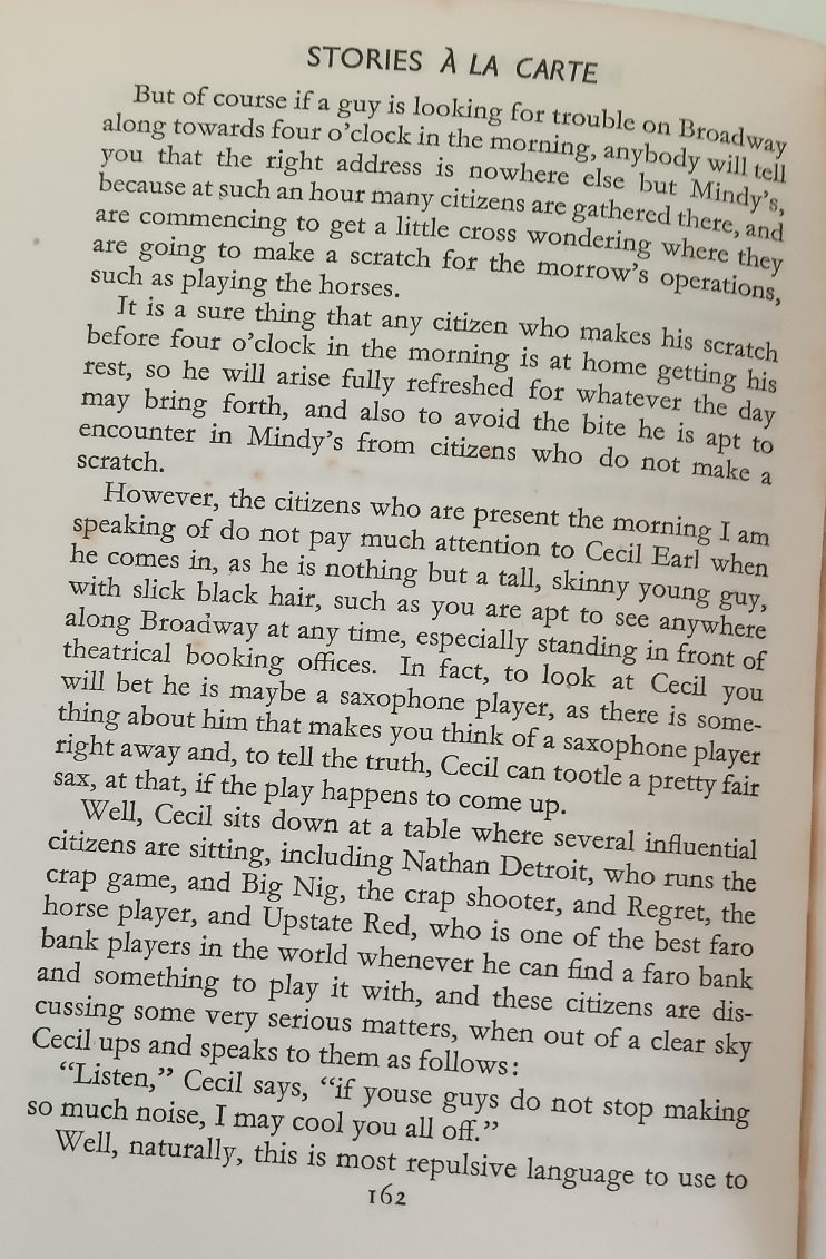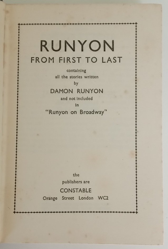 From First to Last by Damon Runyon is a truly fantastic read . This is a companion volume to On Broadway by Damon Runyon and between the two they contain just about all his stories. They are truly delightful, literally from first to last! The language, dialogue and cast of quirky characters are richly comic and unique.