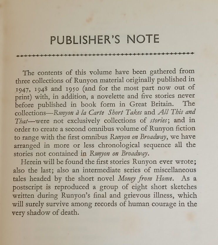 In “Runyon from First to Last,” Damon Runyon captivates readers with his distinctive narrative style, blending humor and pathos in a vibrant tapestry of New York City’s underworld during the early 20th century.