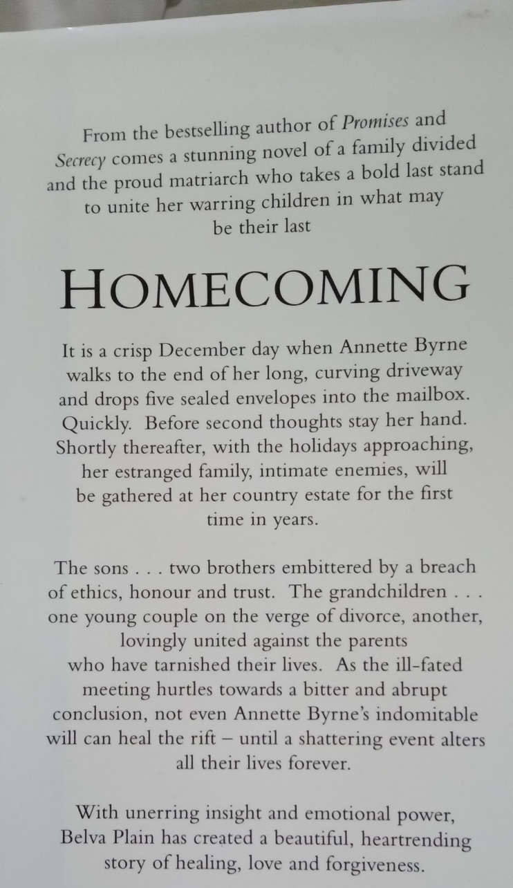 With unerring insight and emotional power, Belva Plain, in her extraordinary novel, tells the story of a family divided and of the proud matriarch who takes a bold last stand to unite her warring children in what may be their last Homecoming.