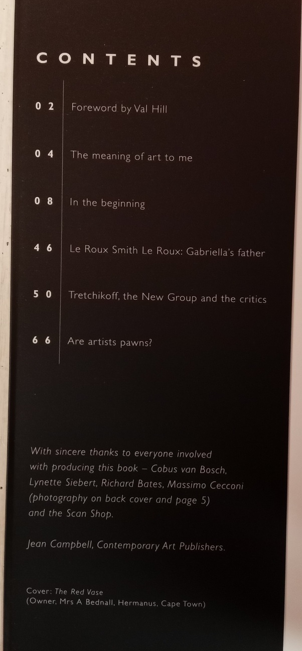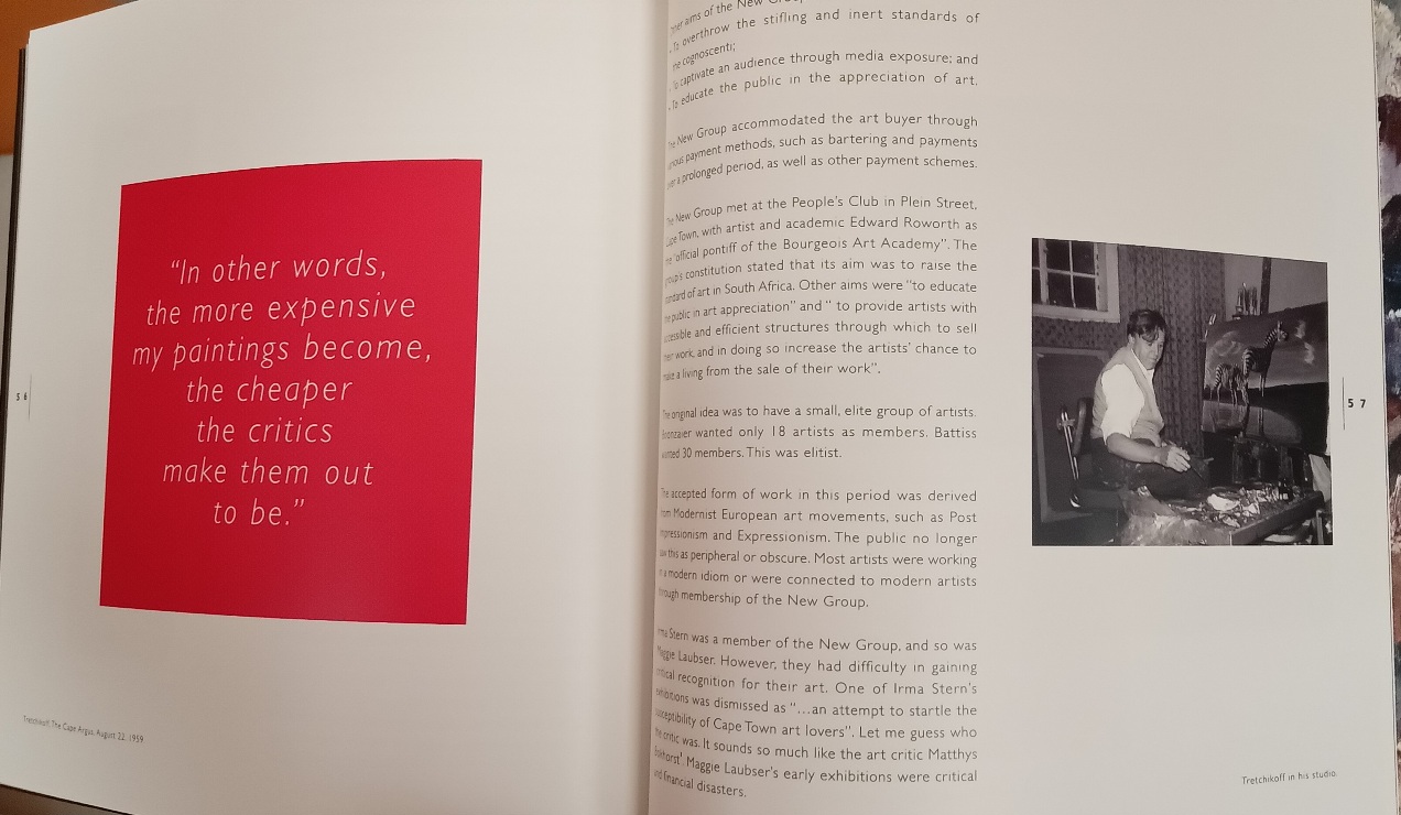 This was due, she asserts, to the hostility towards Tretchikoff from the so-called New Group led by Walter Battiss and Gregoire Boonzaier. She has strong words on a number of subjects, principally on the art establishment and its various members.
