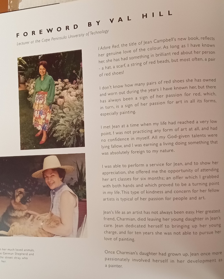 Ref. Jean comments on her approach to painting in her monologue ’I Adore Red’ published by Jean Campbell Contemporary Art publishers 2008