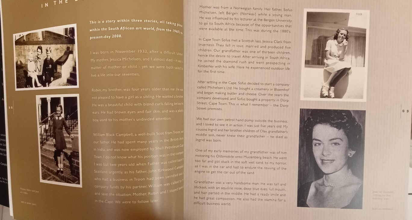 An outspoken autobiography with pictures by the admired South African artist Jean Campbell. She believes her association with artist Vladimir Tretchikoff, who was a next-door neighbour in Sea Point and who taught her, resulted in her being failed by the Michaelis School of Art in her final year in 1954.