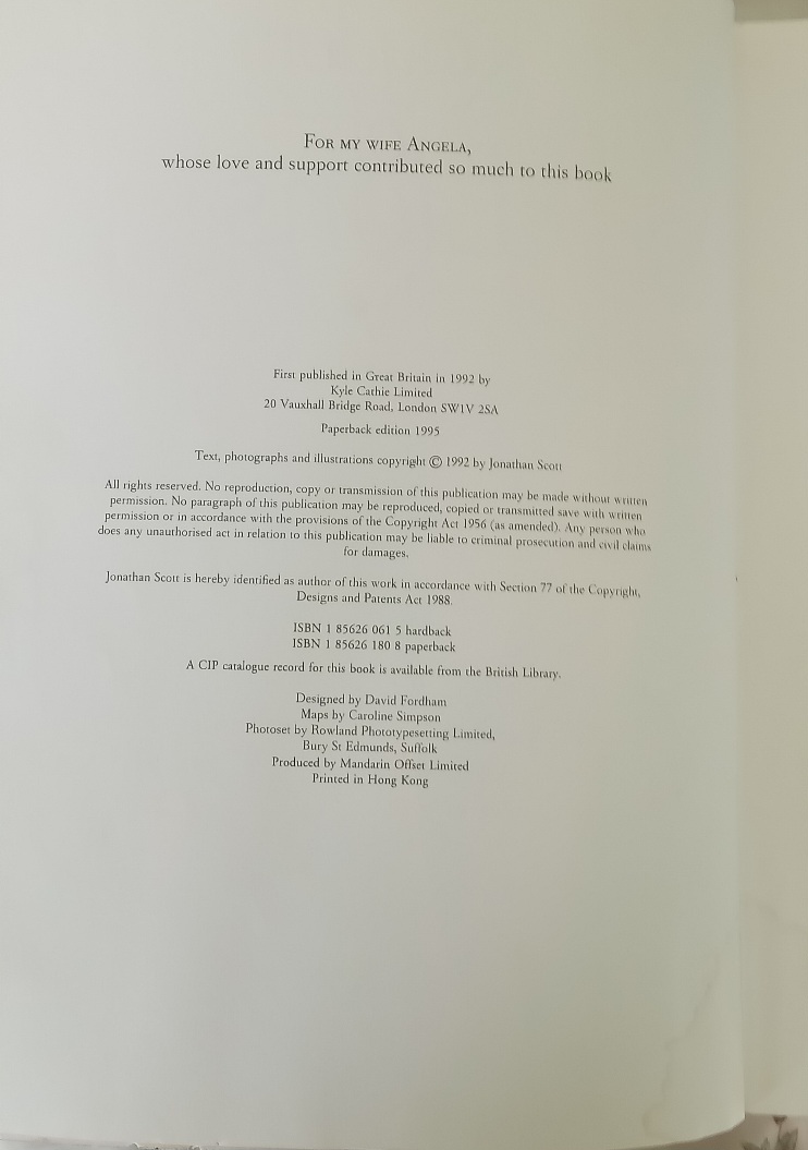 Jonathan Scott has spent most of the last 25 years in the Masai Mara, photographing and writing about the animals, and especially the big cats. A former winner of the prestigious BBC Wildlife Photographer of the Year Award and co-presenter of BBC-TV’s Big Cat Diary, he has written and photographed eight other major books (latterly in collaboration with his wife Angela, who is BBC Wildlife Photographer of the Year for 2002) and has established himself as one of the great portrayers of East African wildlife.