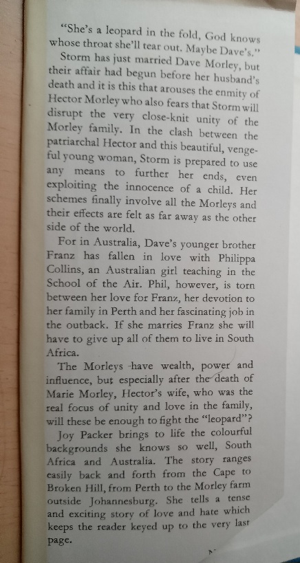 In the 1950s, she also began publishing novels, starting with Valley of the Vines in 1955, which sold more than 600 000 copies in English, and was translated into at least nine European languages. Although her novels principal themes were romantic, several sources state them as also important for their sociopolitical commentary of South Africa at the time. Her second novel, Nor the Moon by Night was made into a British film of the same name. In America, it was released as Elephant Gun.