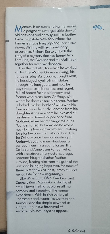 A first novel with all the assurance of a mature writer at the peak of form and ambition, Mohawk is set in upstate New York and chronicles over a dozen lives in a leather town, long after the tanneries have started closing down.