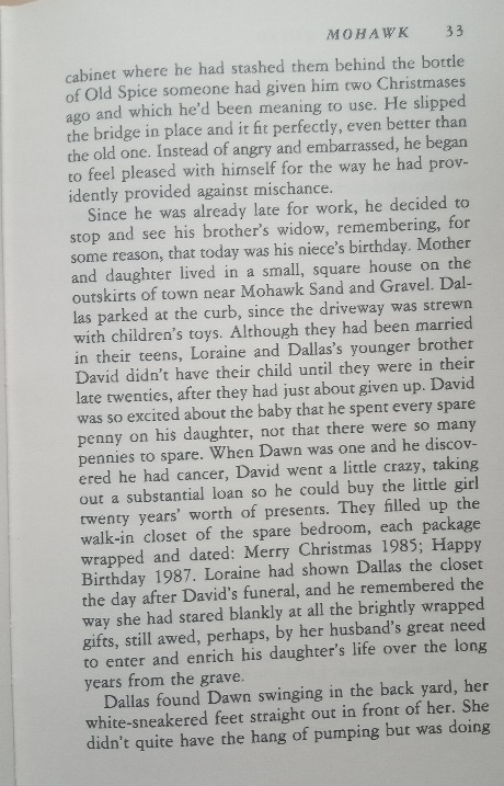 For this is a town like Winesburg, Ohio or Our Town , in our time, that encompasses a plethora of characters, events and mysteries. At once honestly tragic and sharply, genuinely funny, Mohawk captures life, then affirms it.