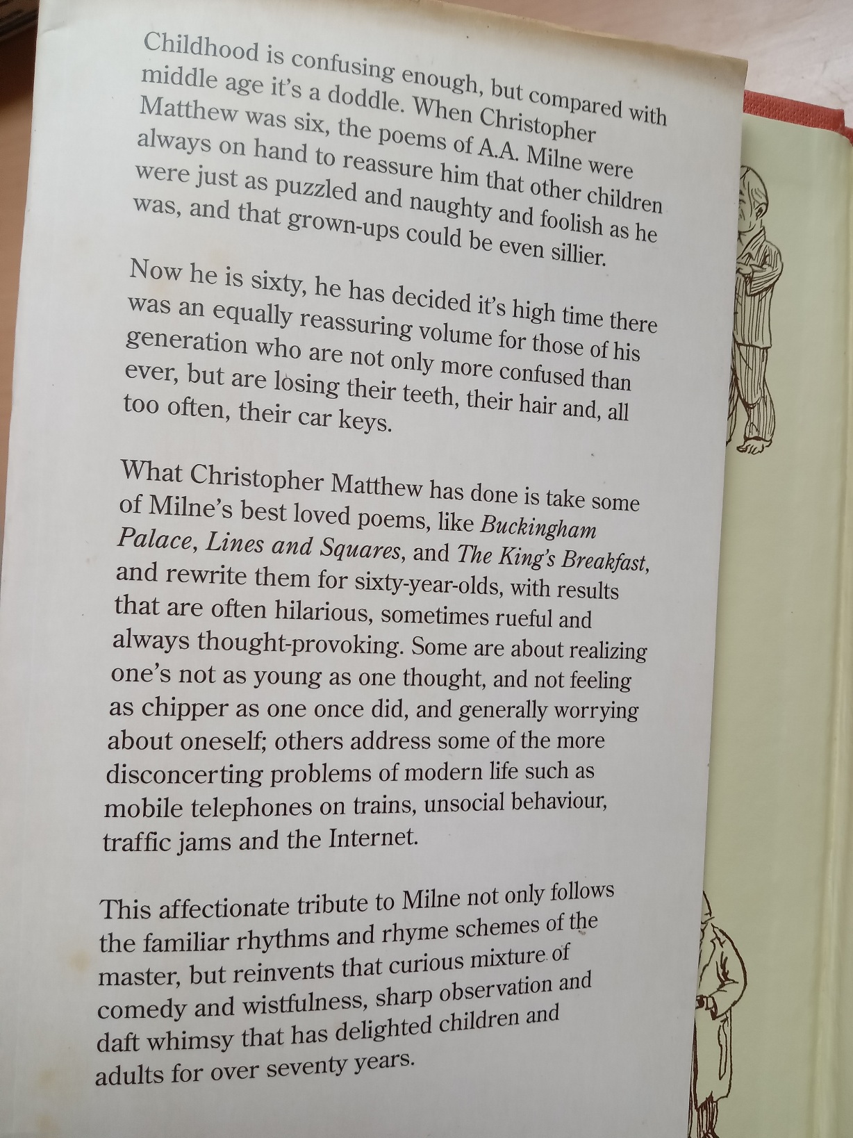 For those turning sixty, this new edition of Christopher Matthew’s tribute to A. A. Milne’s classic poems contains fresh material as well as the old favourites.