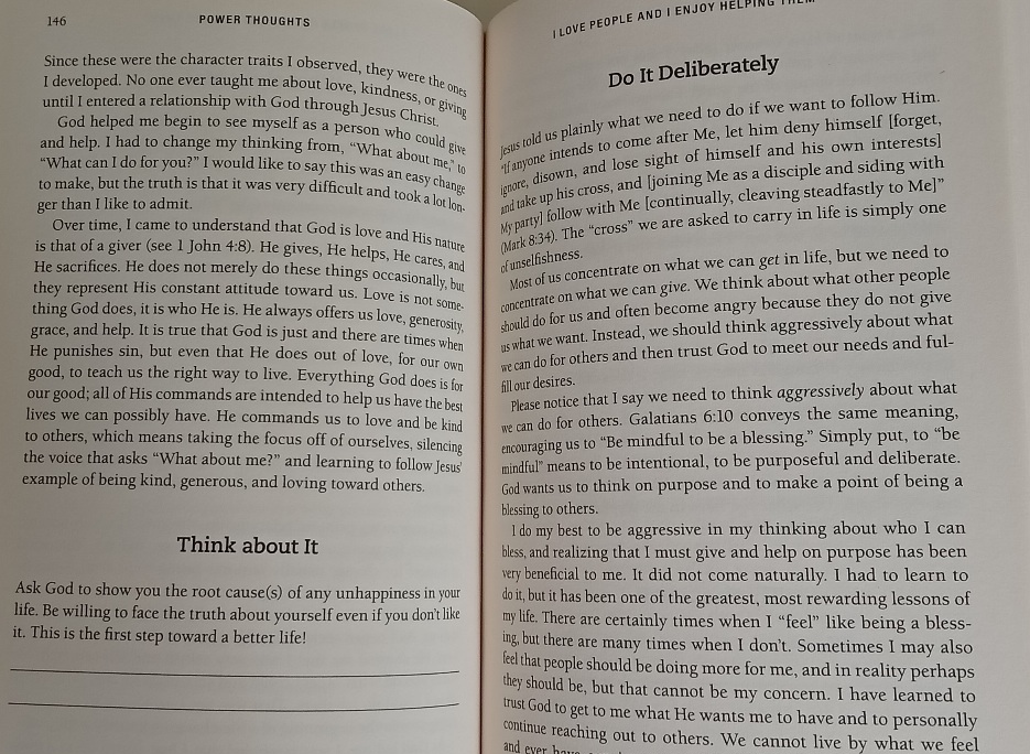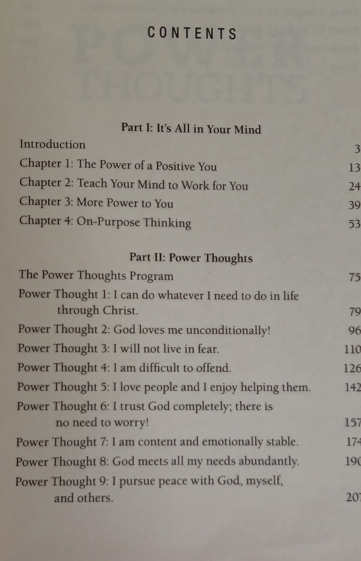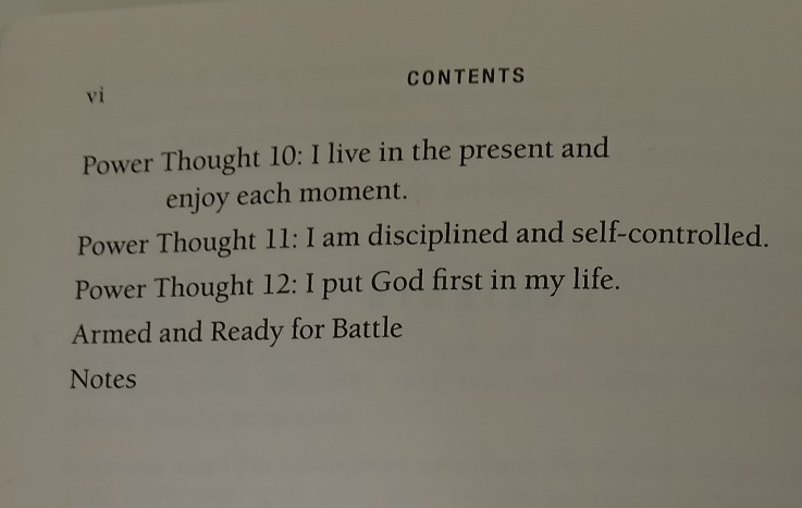 In POWER THOUGHTS, she outlines a flexible program to turn thoughts into habits, and habits into success. Sections include: