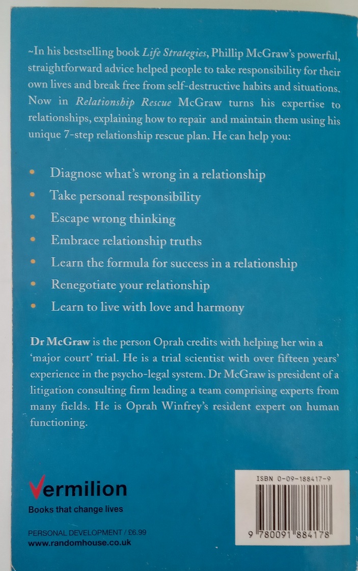 Phil McGraw has already established himself as someone whom readers can turn to for direct, tell-it-like-it-is help in their own lives. Now he offers readers the chance for further happiness through meaningful, fulfilling relationships that work. Dr. McGraw helps get relationships back on track with a controversial explosion of the myths of conventional relationship thinking and clear action-oriented steps for reconnecting partners.