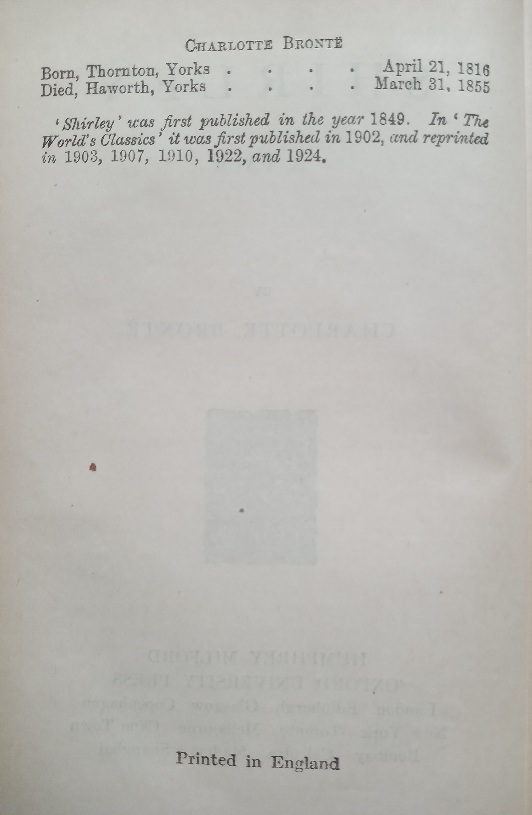 A novel borne from tragedy, Charlotte published Shirley in 1849; and while writing the novel, her brother Branwell died in 1848; followed shortly thereafter by the death of her sister Emily also in 1848; and then, horrifyingly, by her remaining sister, Anne, in 1849. In fact, it is believed that the characters of her two primary female protagonists in the novel, Caroline Helstone and Shirley Keeldar are modeled after her sisters Anne and Emily, respectively. Shirley was Charlotte Bronte’s second published novel, following Jane Eyre which was published in 1847.
