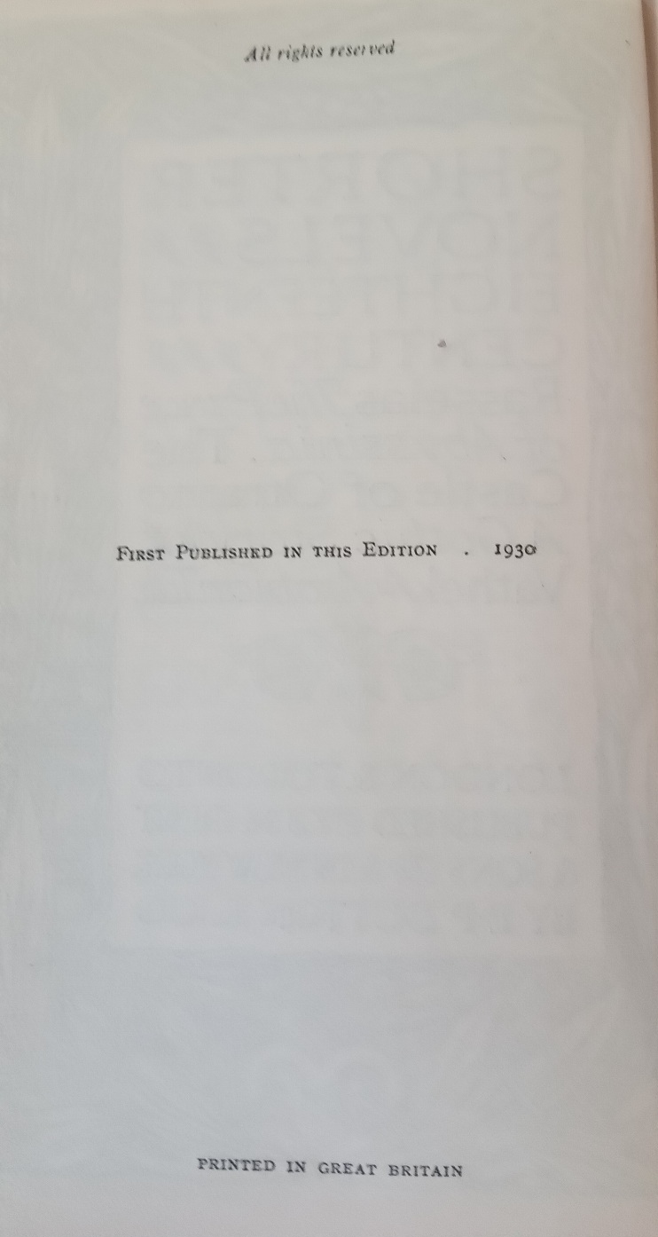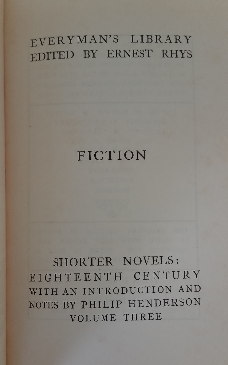 - Book Title:Shorter Novels, Eighteenth Century (often Volume III).
