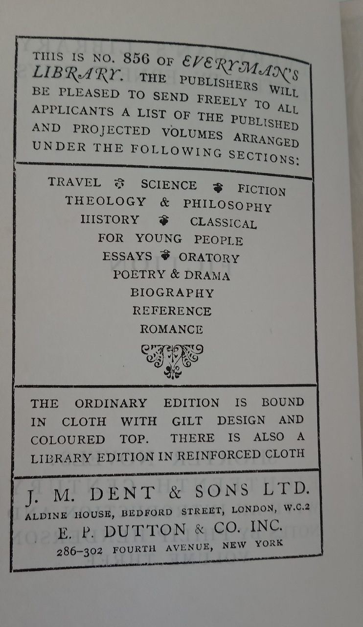 - Publisher: Everyman’s Library (J.M. Dent & Sons).
