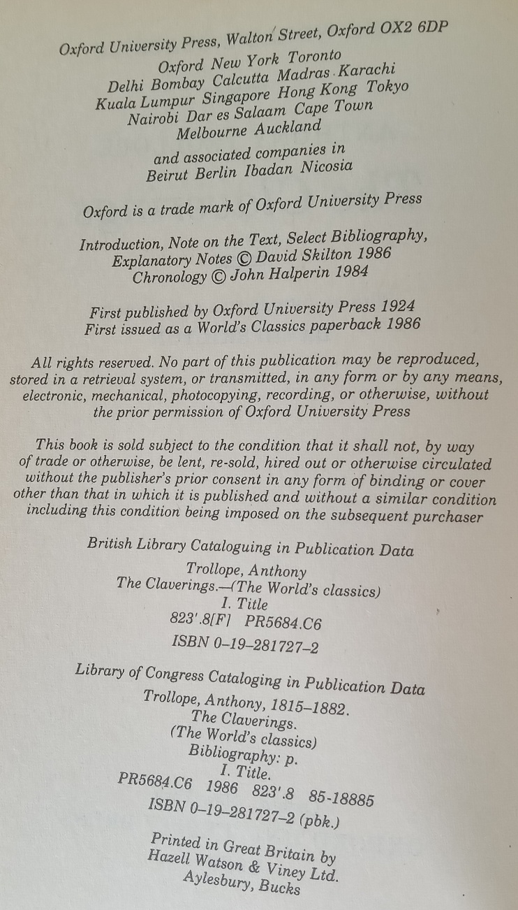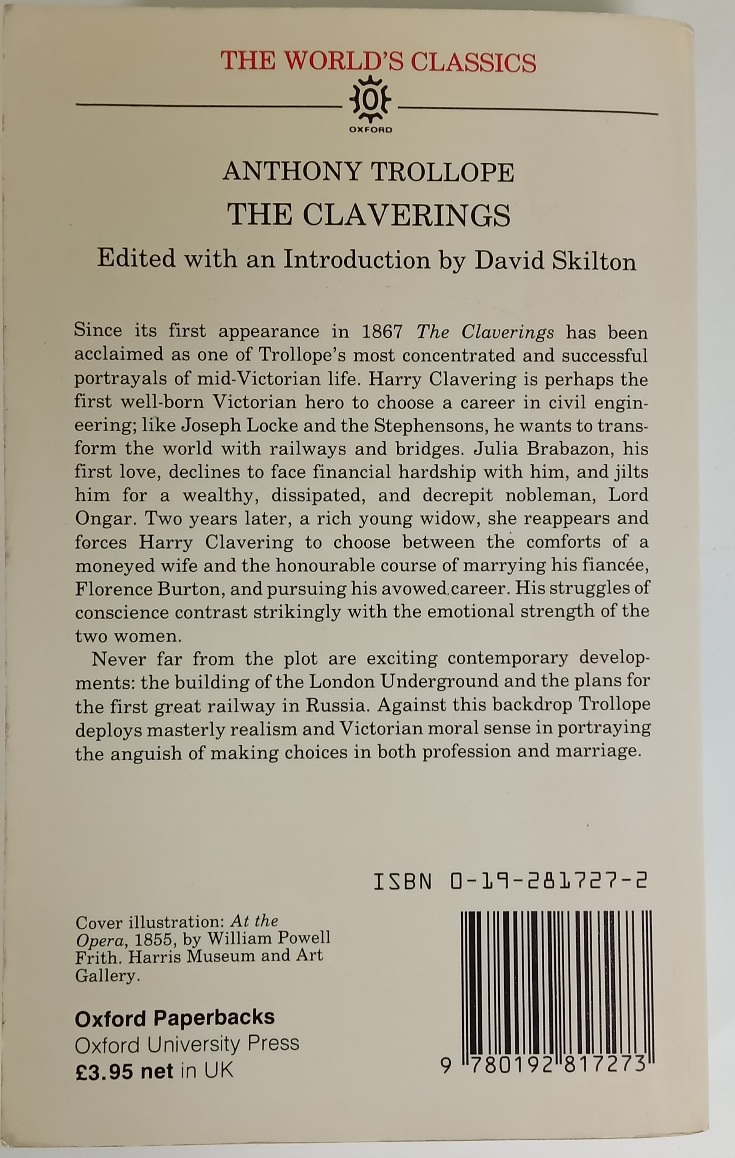 Since its first appearance in 1867, this novel has been acclaimed as one of Trollope’s most successful protrayals of mid-Victorian life. The Claverings is filled with contemporary detail and shows, as Trollope often does, the weakness of men and the emotional strength of women.