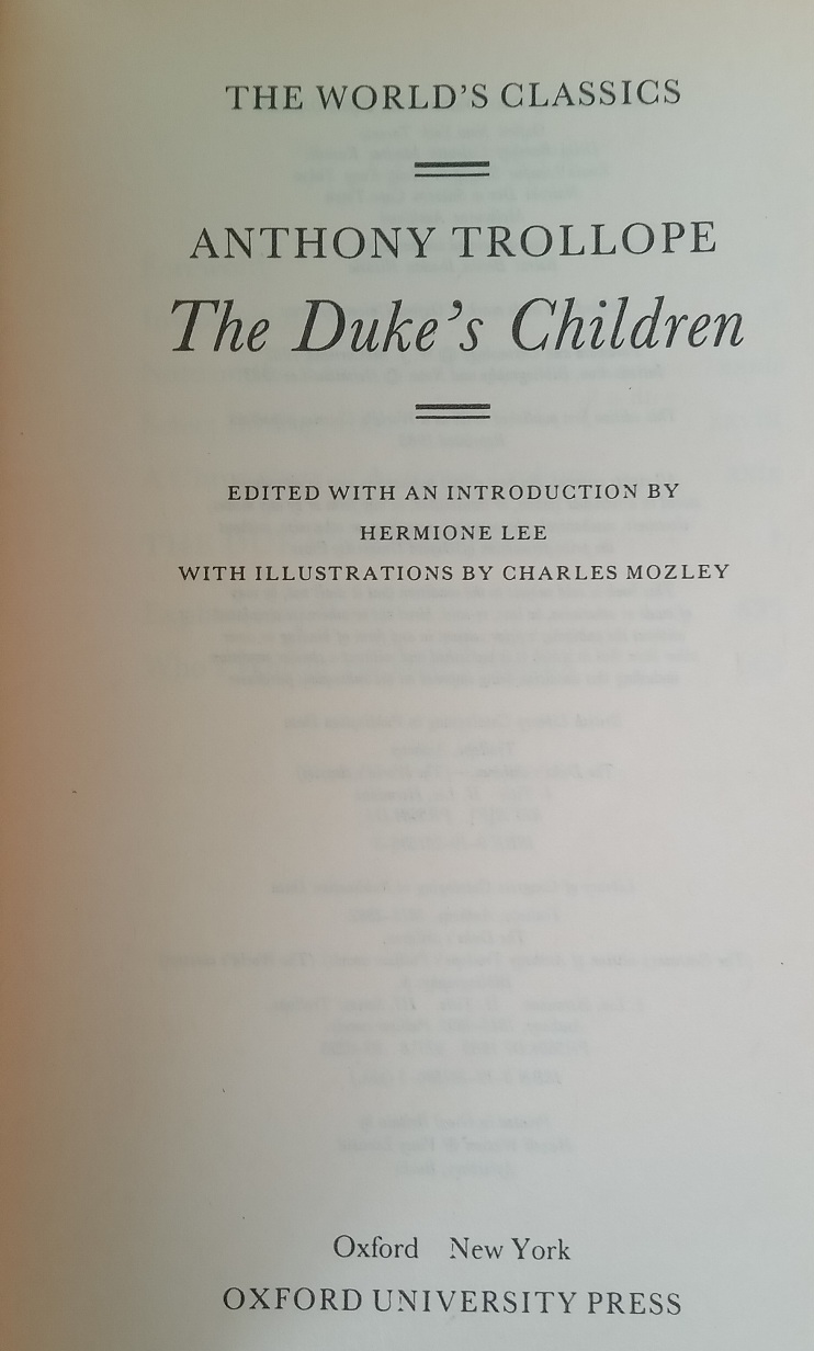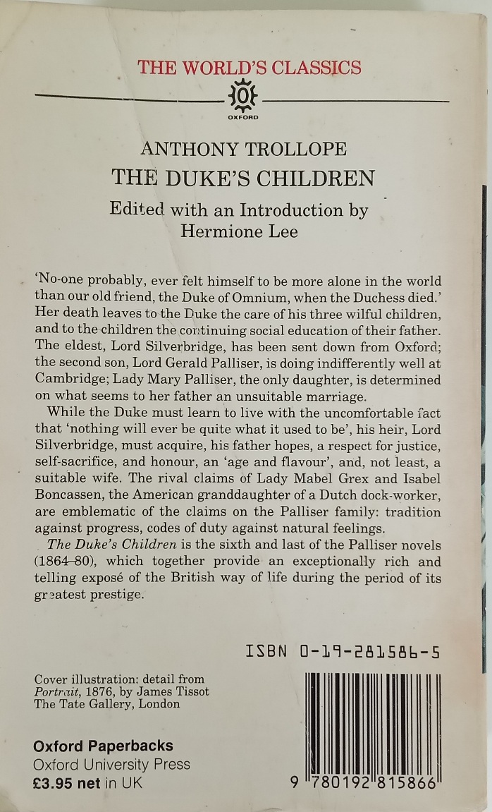 Plantagenet Palliser must face new challenges and a changing world if he is to hold his family together in the final installment of the Palliser Novels.