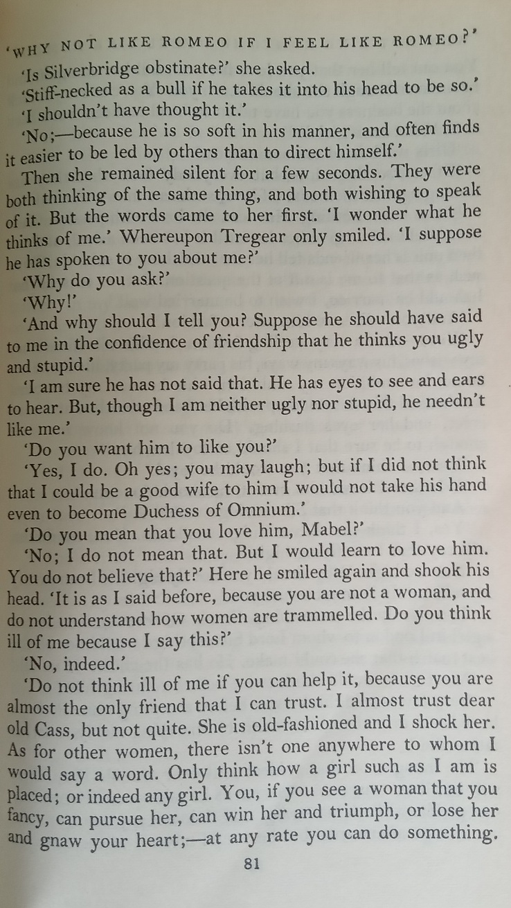 Unbeknownst to Palliser, his late wife had given their daughter, Lady Mary, her blessing to pursue a courtship with a poor gentleman friend of the duke’s eldest son, Lord Silverbridge. Meanwhile, Silverbridge has followed his father’s wishes by entering Parliament only to become enamored with an American heiress who refuses to marry unless Palliser willingly welcomes her into the family. And Palliser’s youngest, Lord Gerald, has managed to get himself expelled from Oxford.