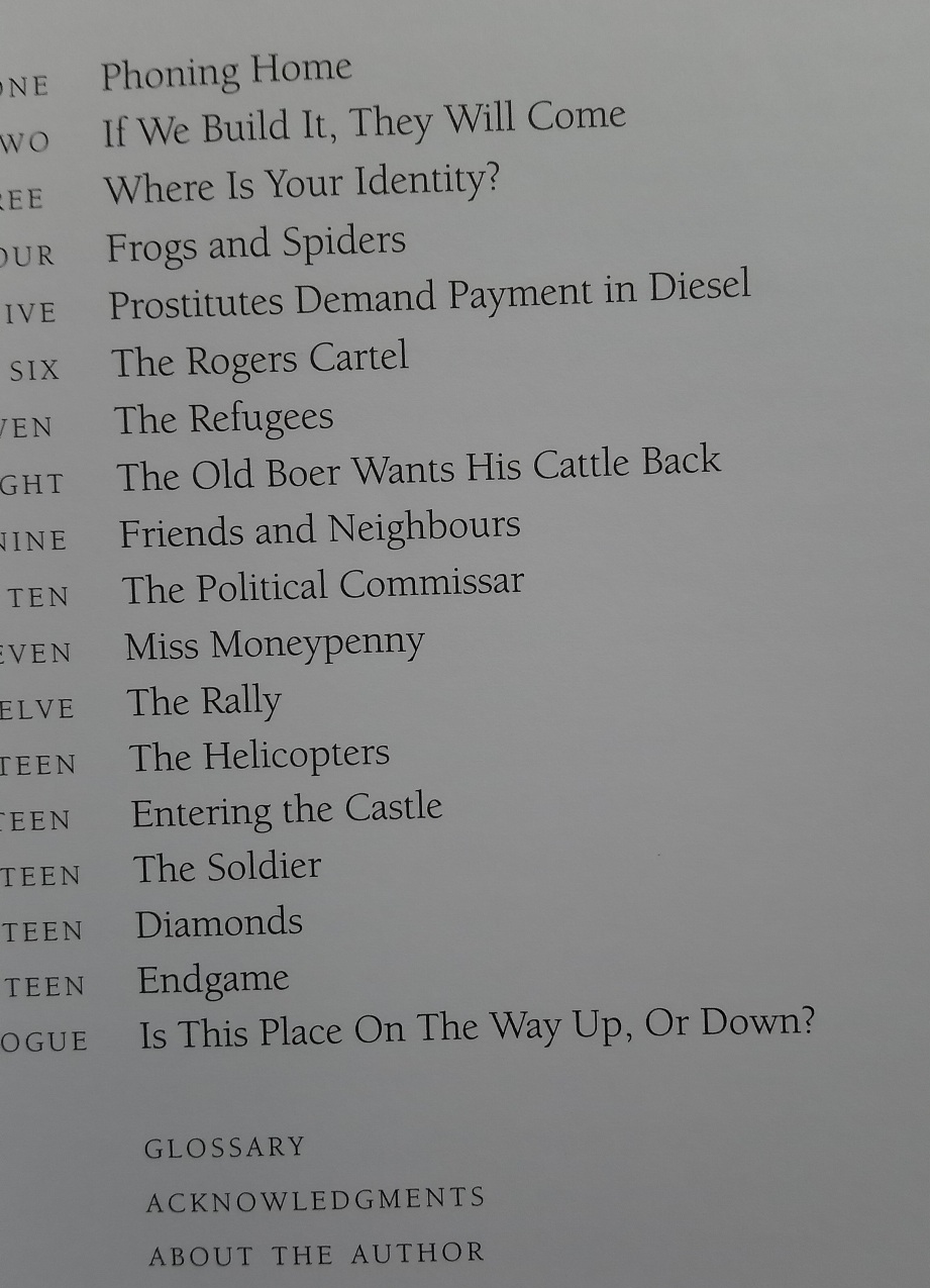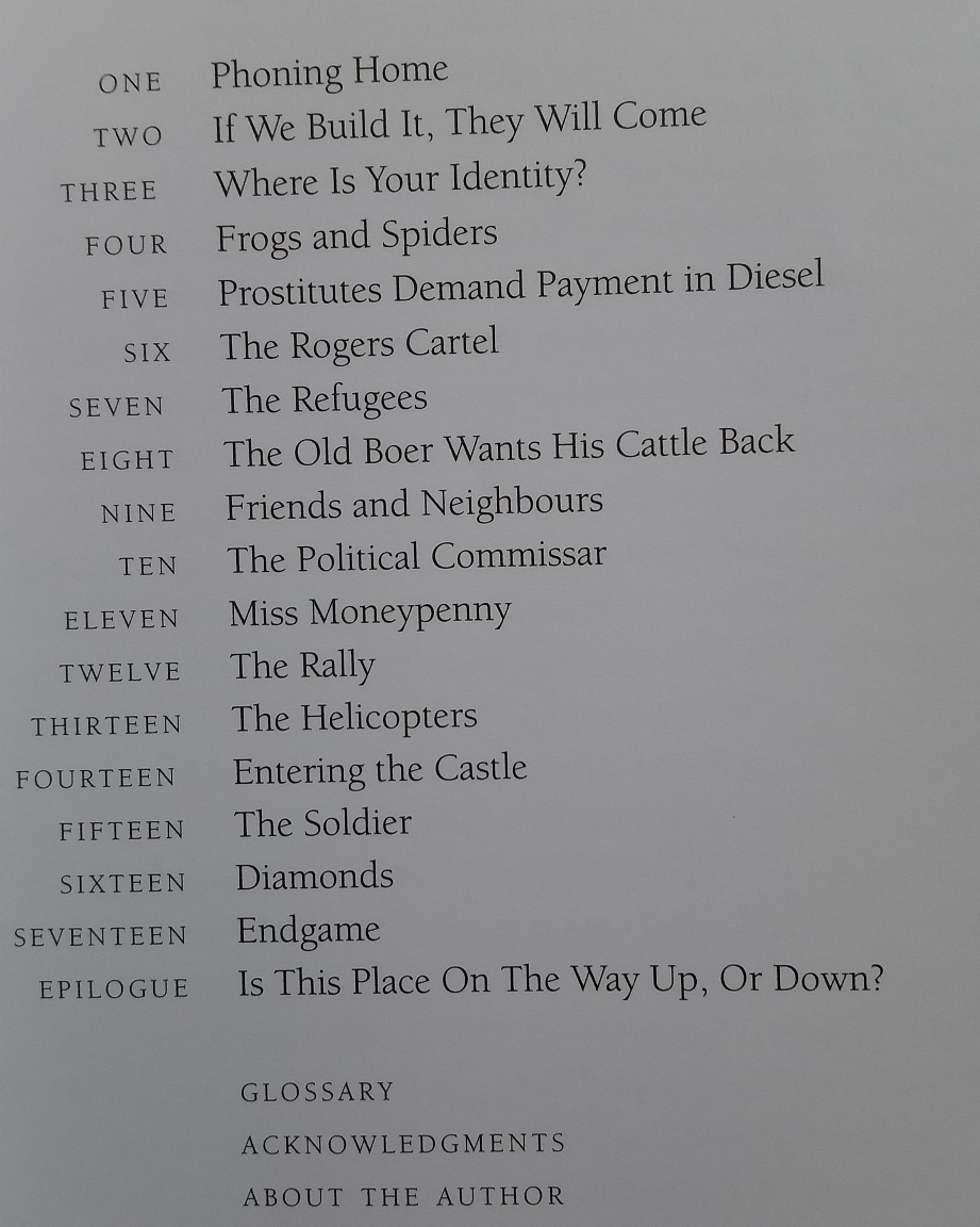On returning to the country of his birth, Rogers finds his once orderly and progressive home transformed into something resembling a Marx Brothers romp crossed with Heart of Darkness: pot has supplanted maize in the fields; hookers have replaced college kids as guests; and soldiers, spies, and teenage diamond dealers guzzle beer at the bar.