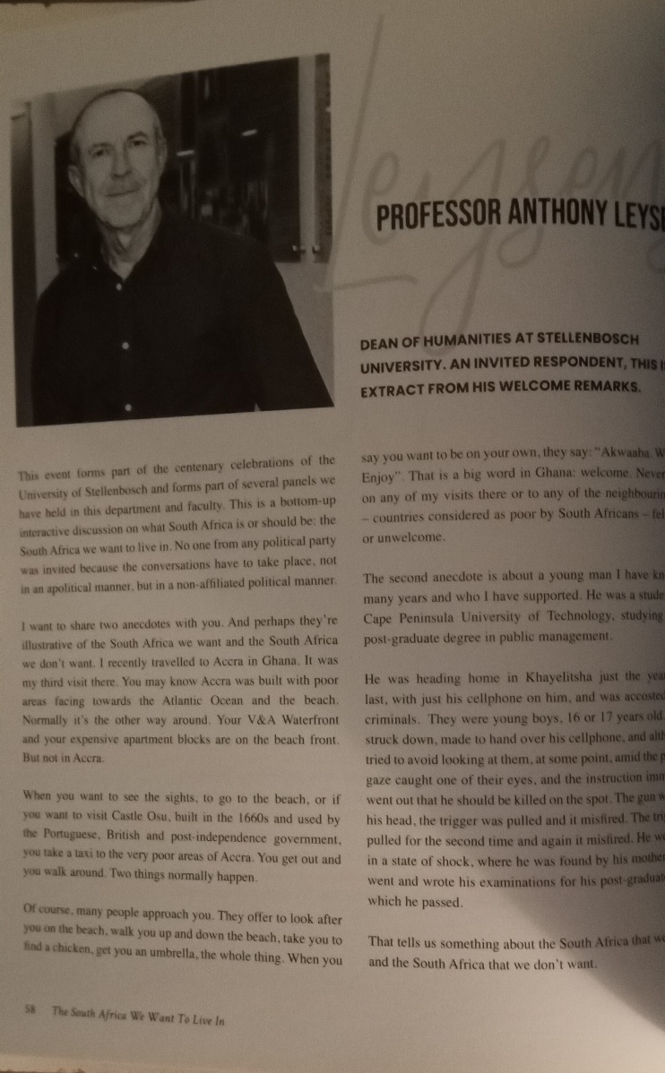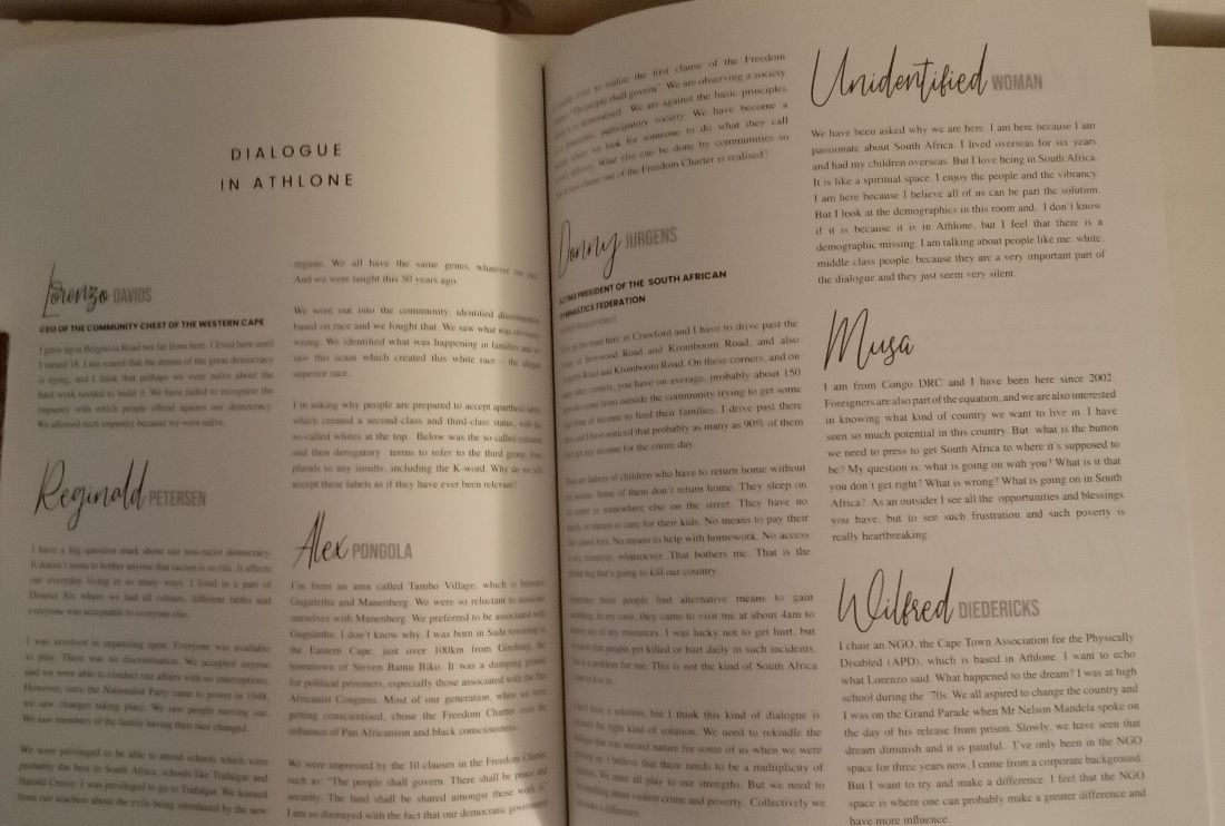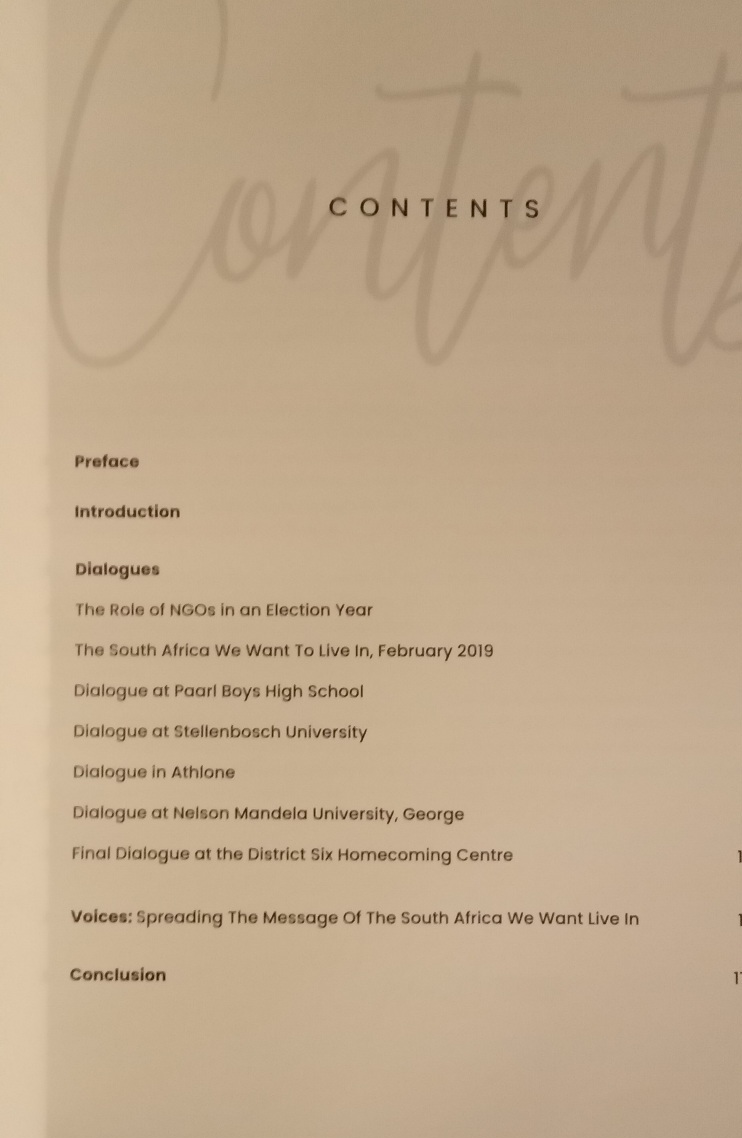 The topic of the discussion was the South Africa we want to live in, and the organisers made sure that many voices as possible were heard. In pulling together the report of the dialogues, we realised that we could not talk about the South Africa we want to live in while only reflecting the views of the people who live in the Western Cape.