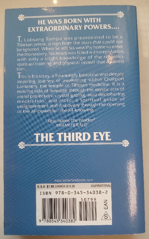 T. Lobsang Rampa was preordained to be a Tibetan priest, a sign from the stars that could not be ignored. When he left his wealthy home to enter the monastery, his heart was filled with trepidation, with only a slight knowledge of the rigorous spiritual training and physical ordeal that awaited him . . . . This is his story, a hauntingly beautiful and deeply inspiring journey of awakening within Chakpori Lamasery, the temple of Tibetan medicine. It is a moving tale of passage through the mystic arts of astral projection, crystal gazing, aura deciphering, meditation, and more, a spiritual guide of enlightenment and discovery through the opening of the all-powerful, the all-knowing . . . . ” Fascinates the reader ” — Miami Herald