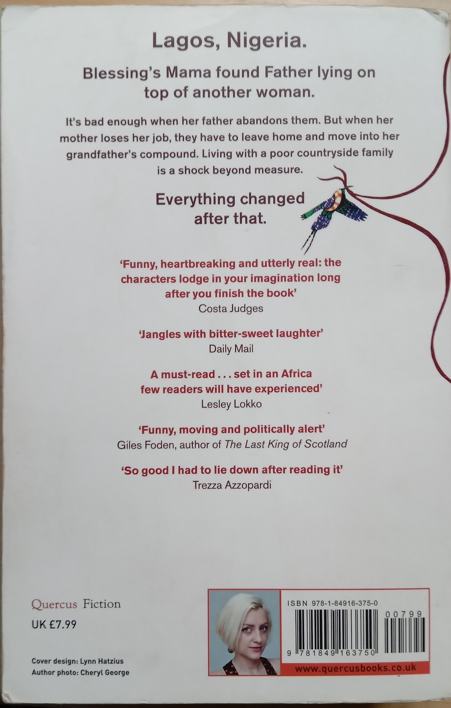 Without running water or electricity, Warri is at first a nightmare for Blessing. Her mother is gone all day and works suspiciously late into the night to pay the children’s school fees. Her brother, once a promising student, seems to be falling increasingly under the influence of the local group of violent teenage boys calling themselves Freedom Fighters. Her grandfather, a kind if misguided man, is trying on Islam as his new religion of choice, and is even considering the possibility of bringing in a second wife.