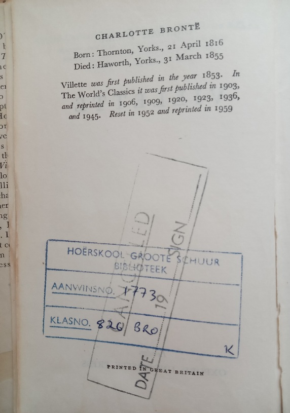 1959 Published by Oxford “the world’s classics World’s Classics Edition #47”