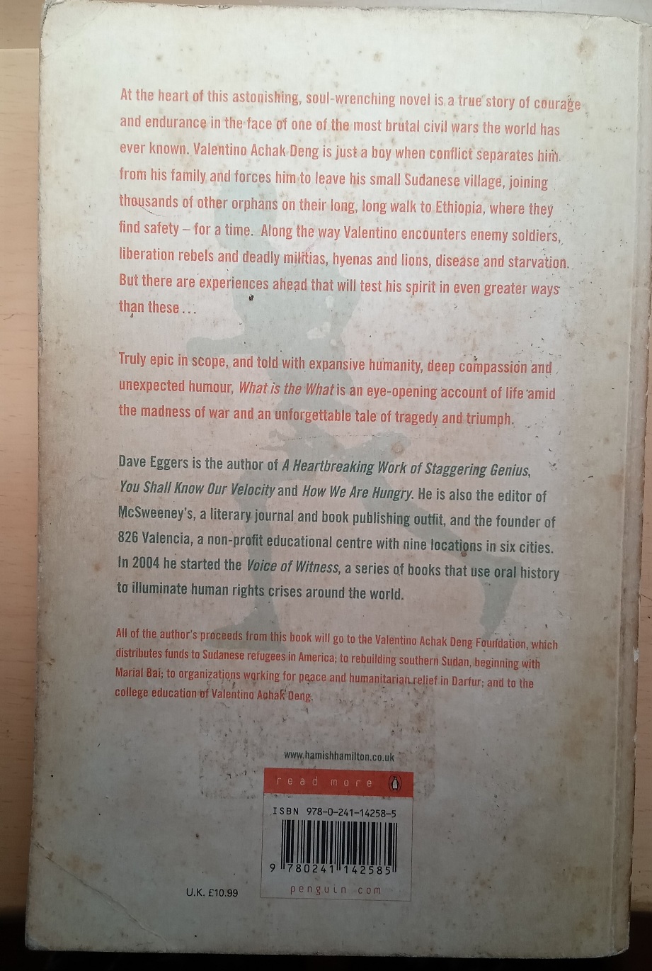 What Is the What is the epic novel based on the life of Valentino Achak Deng who, along with thousands of other children —the so-called Lost Boys—was forced to leave his village in Sudan at the age of seven and trek hundreds of miles by foot, pursued by militias, government bombers, and wild animals, crossing the deserts of three countries to find freedom. When he finally is resettled in the United States, he finds a life full of promise, but also heartache and myriad new challenges. Moving, suspenseful, and unexpectedly funny.