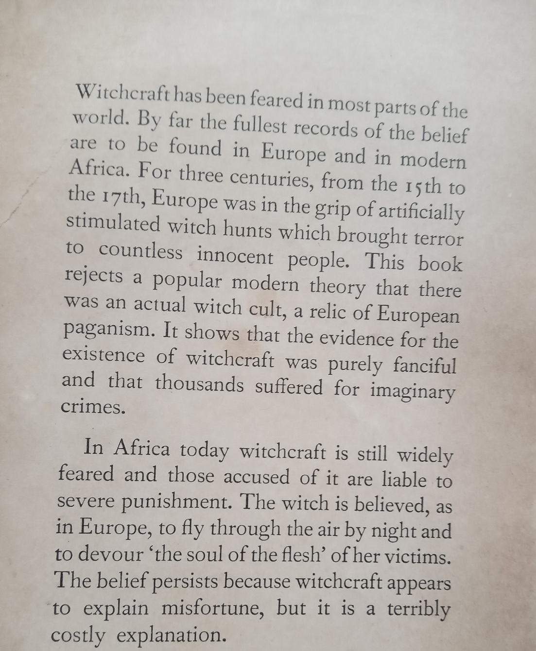 Now a quite dated exploration of European witchcraft trials vs. African witchcraft belief. Questionable at times but mostly of interest.